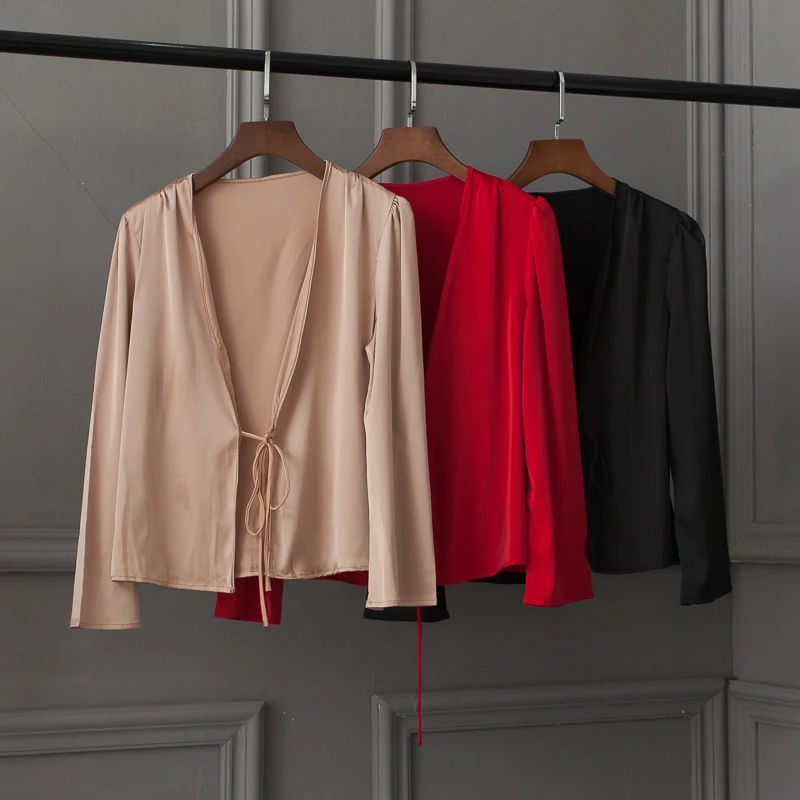 awesome Women Self Tie Front Satin Blouse Satin Shirt