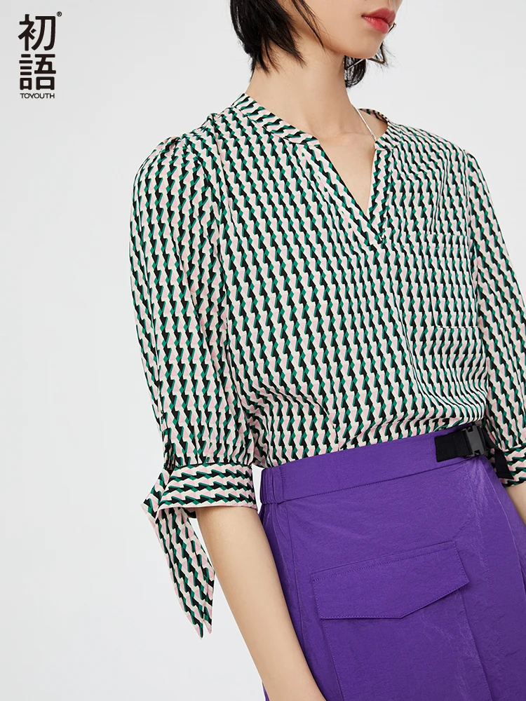 price reduction Toyouth Plaid Office Lady Elegant Bowknot Half Sleeve V neck Chiffon Blouse Shirt Summer Women Tops