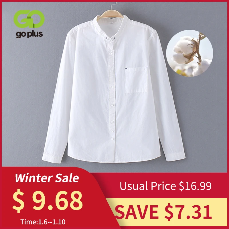 discounted GOPLUS 2019 White Blouse Women's Shirt Cotton Womens Tops and Blouses Vintage Stand Collar Blusas M