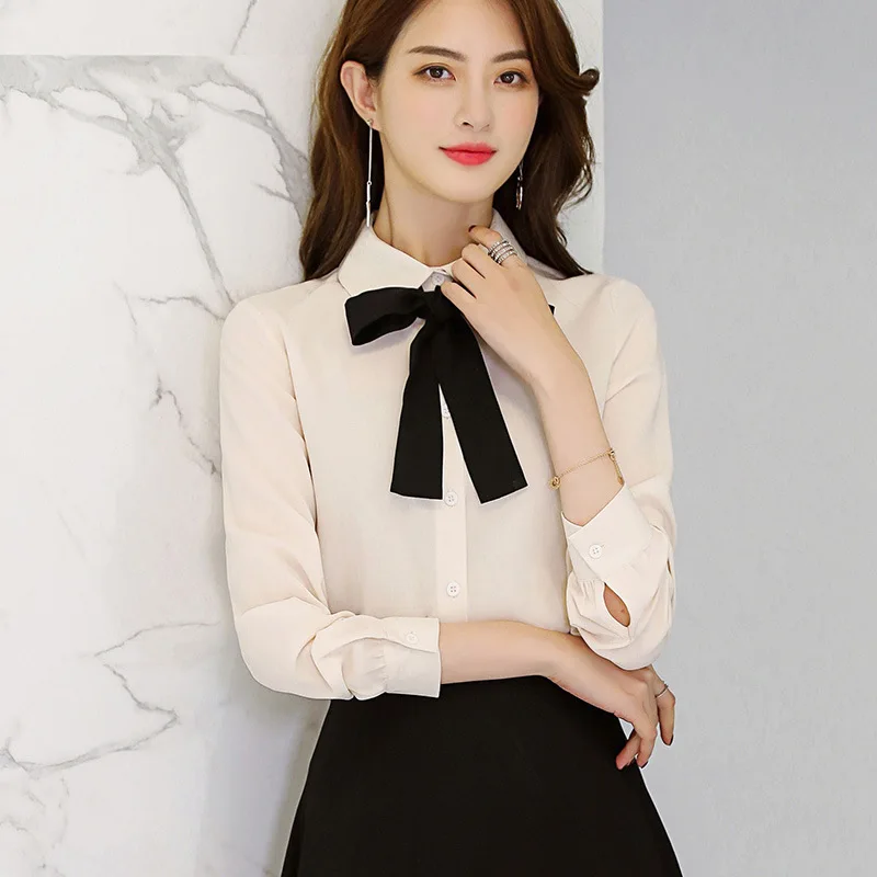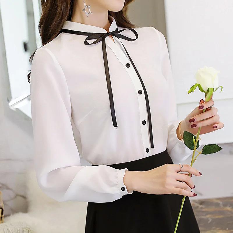 incredible Autumn 2019 Women Casual White Blouse Korean Long Sleeve Slim Shirt Bow Women Clothes Streetwear Sh