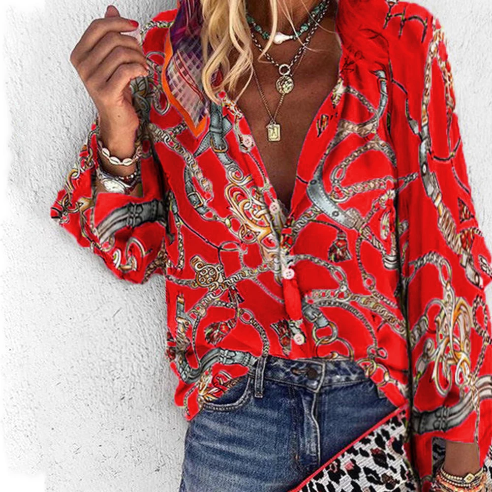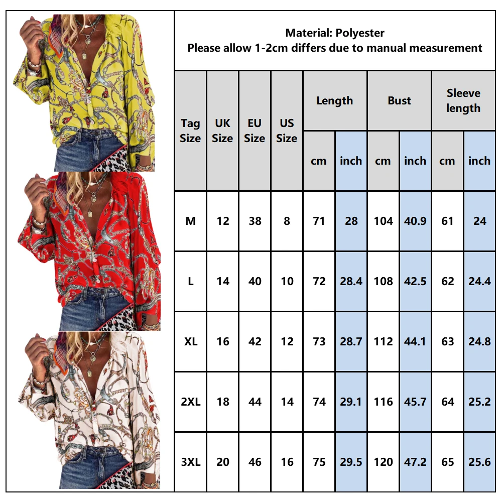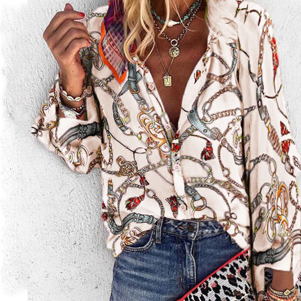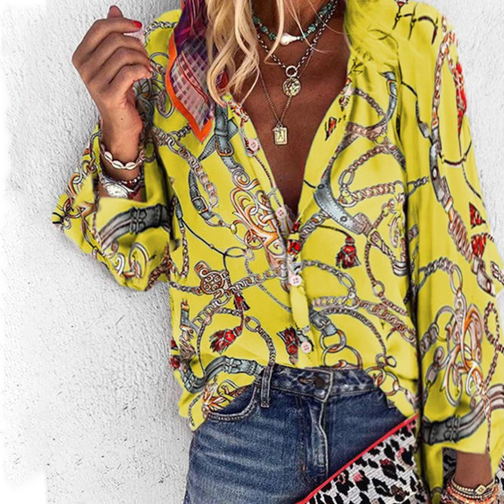 Greatest Autumn Women Tops Ladies Casual Chain Print Long Sleeve Plus Size Blouse Female Loose Shirt blusa f