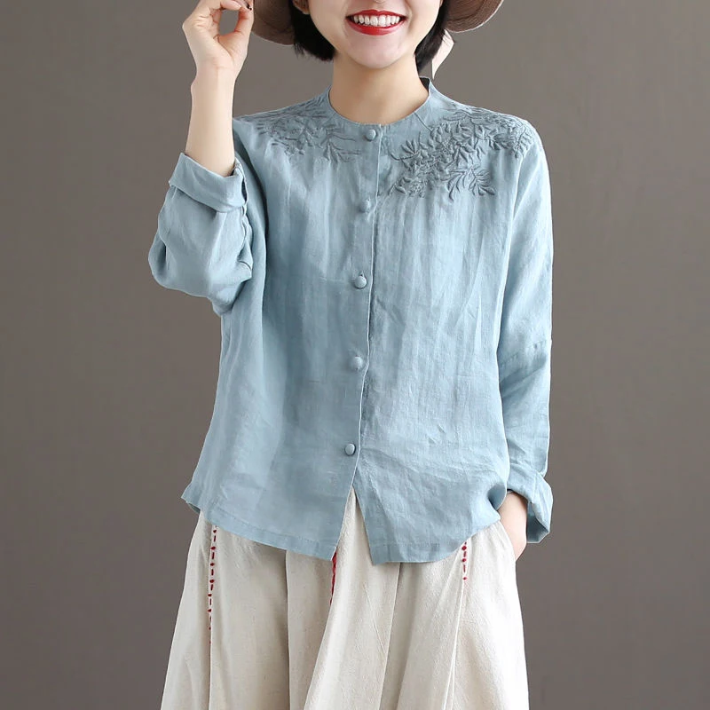 lower price Autumn Arts Style Women Long Sleeve O-neck Loose Shirts Vintage Embroidery Cotton Linen Blouses Top