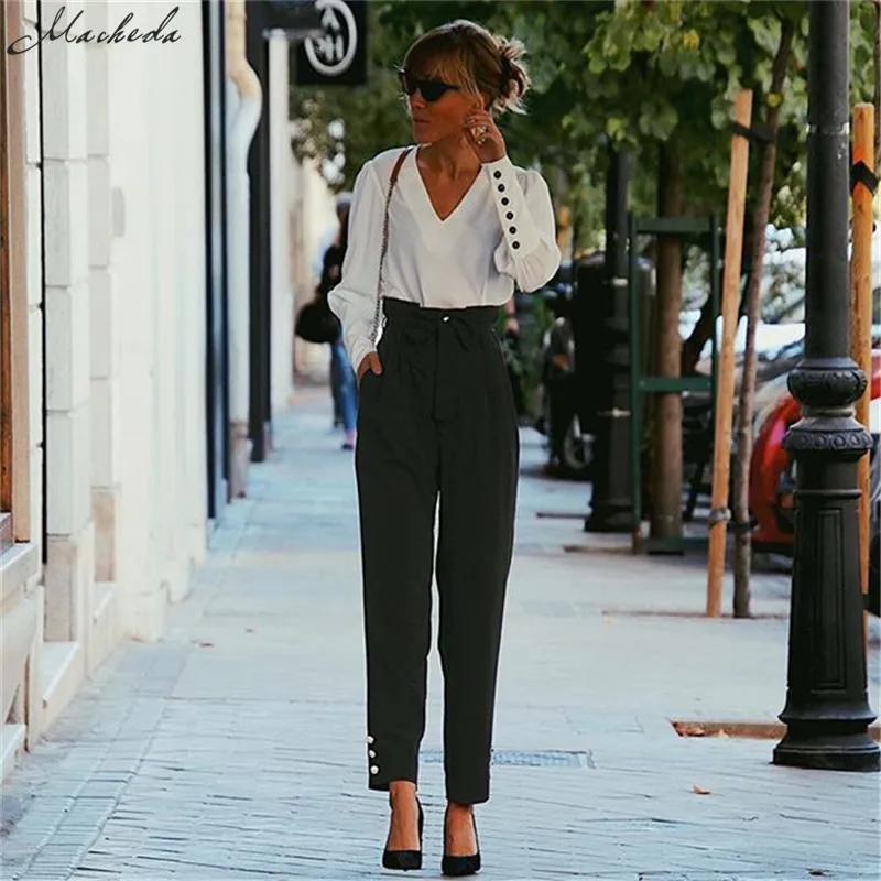 lower price Macheda 2019 Women Casual Tops V-Neck Long Sleeves Elegant Back Button Blouses Spring Summer Fashio