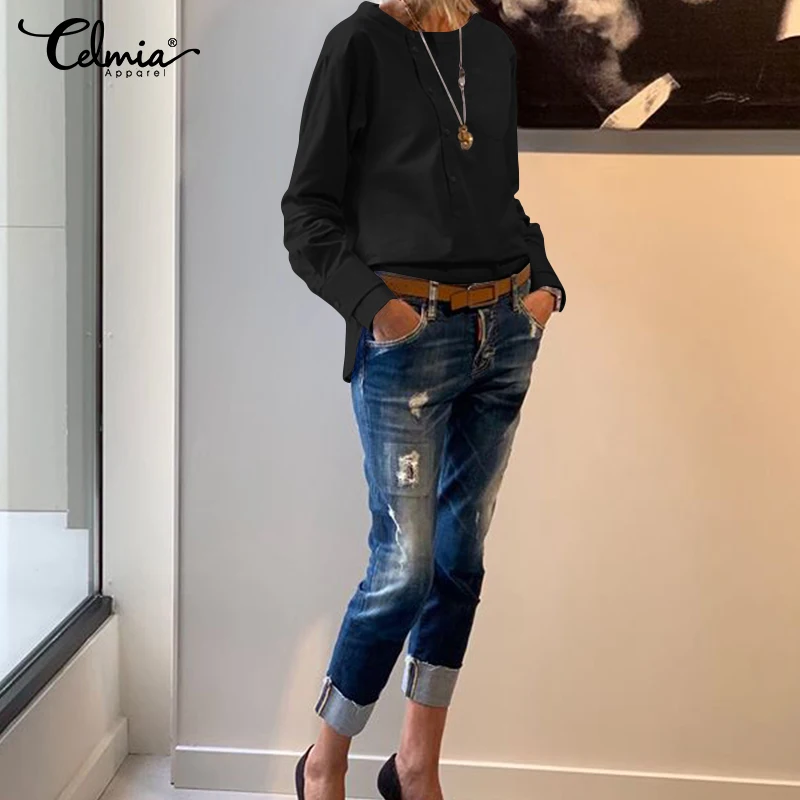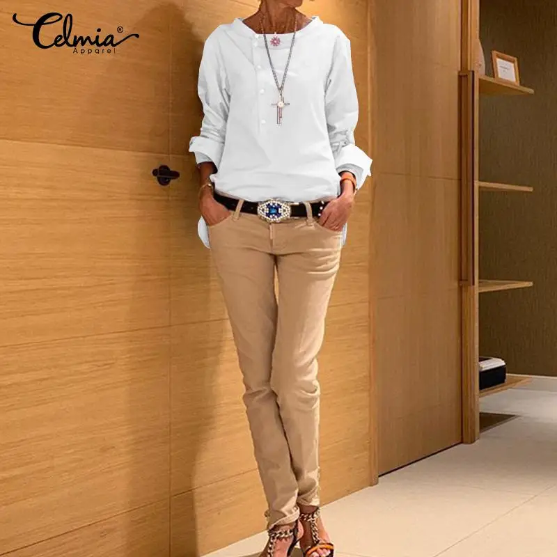 incredible Celmia Vintage Women Blouse 2019 Fashion Shirts Office Ladies Long Sleeve Buttons Solid Blusas Femi