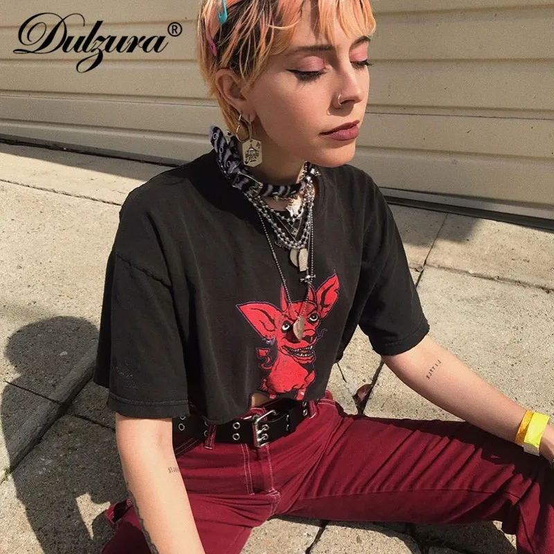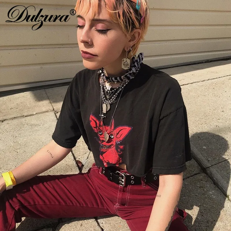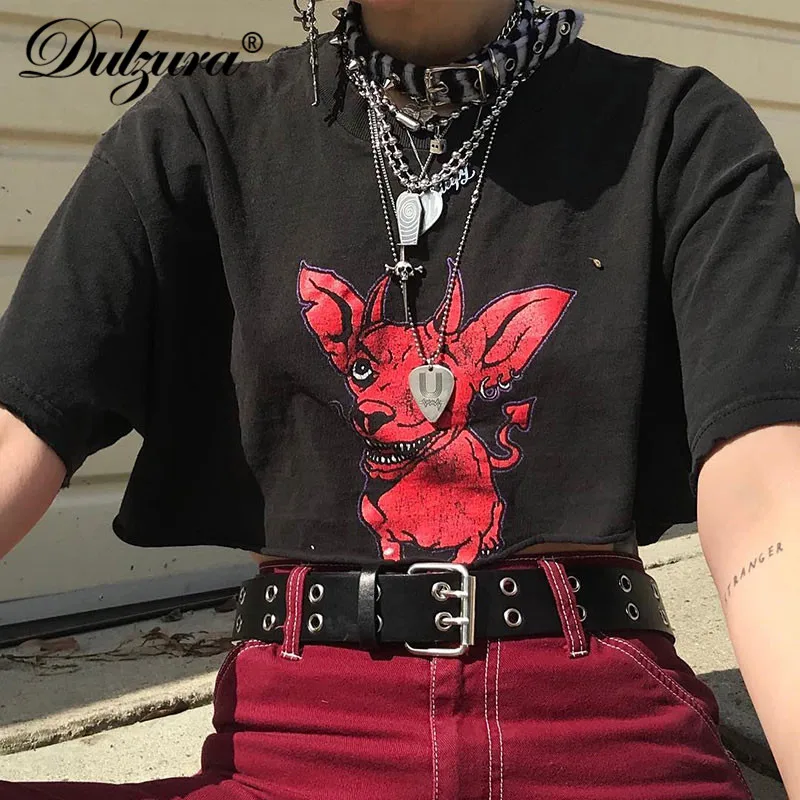 astounding Dulzura women t shirt crop top gothic clothes streetwear tops plus size punk basic tshirt festival
