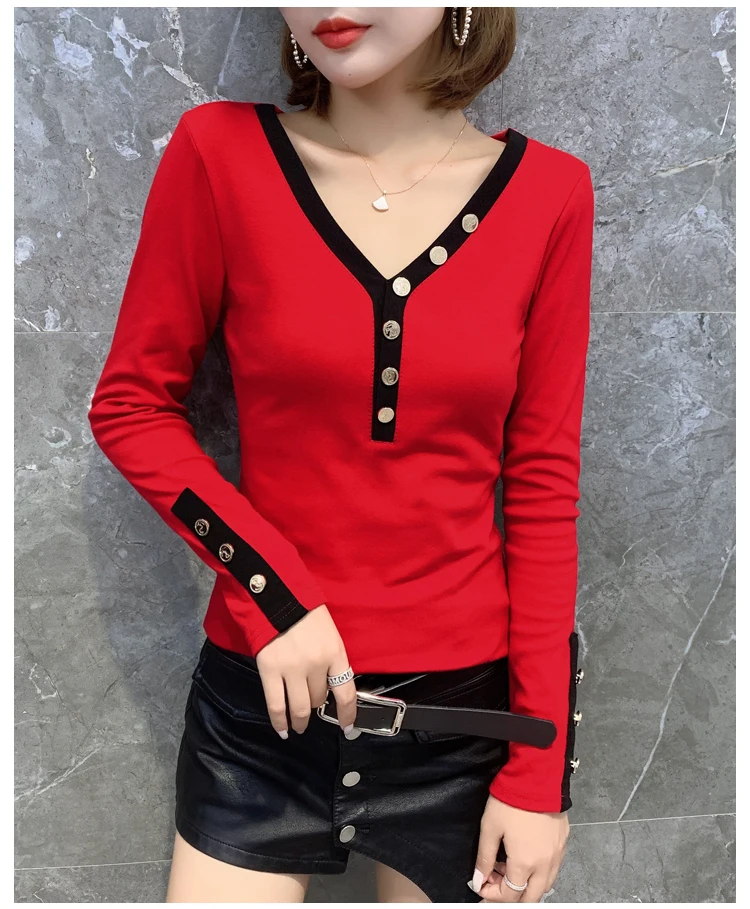 astounding Fashion European Tshirt Women 2019 Autumn Winter Patchwork Button Cotton Tops Clothes With Fleece T