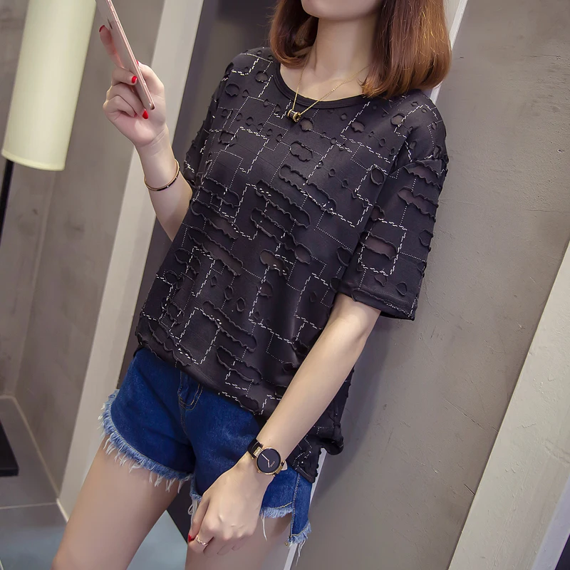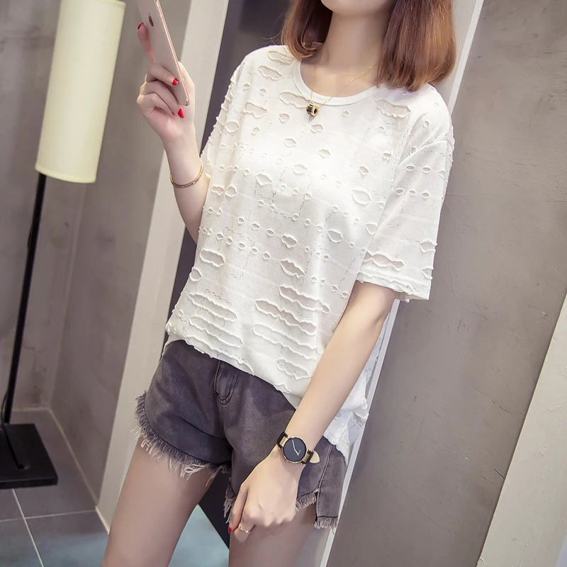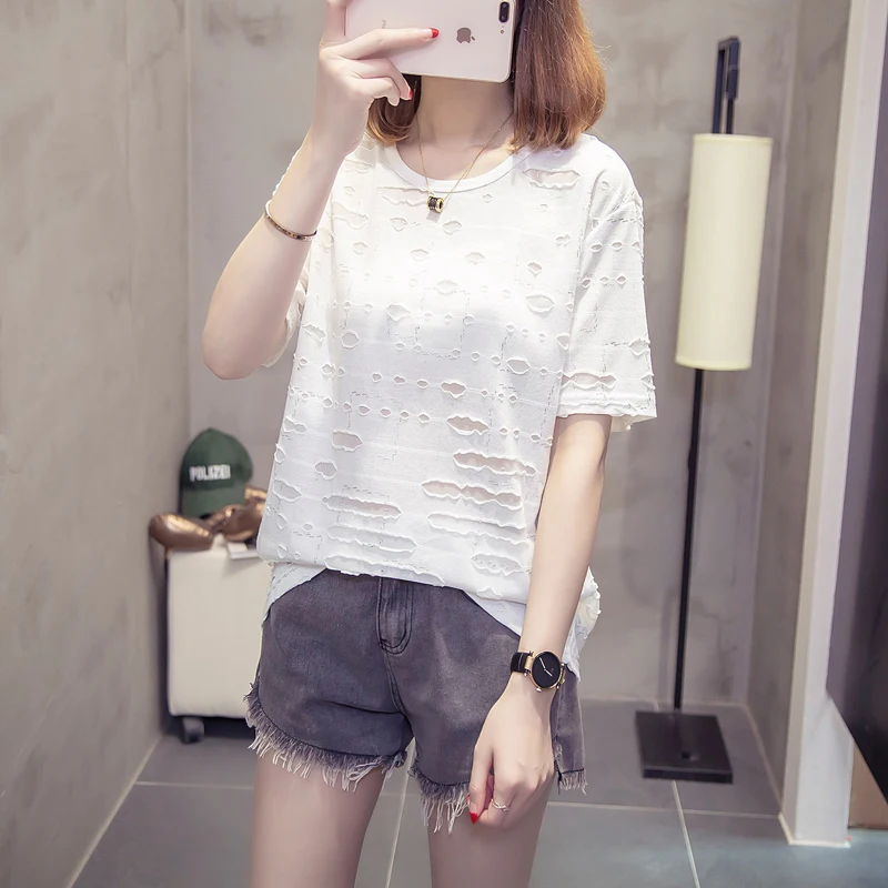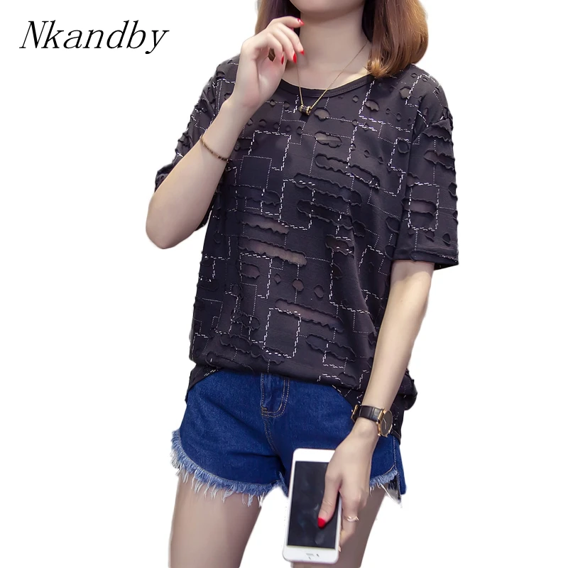 discount Nkandby Plus Size Hole Women T Shirt Summer Vintage T-shirts Short Sleeve Chic Tops Oversized loose
