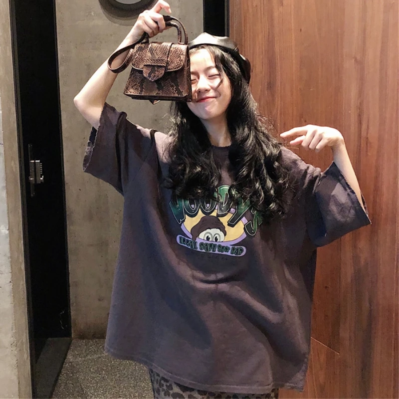discount T-shirts Women Harajuku Cartoon Printing Funny Tshirt Womens Leisure Simple All-match Korean Style