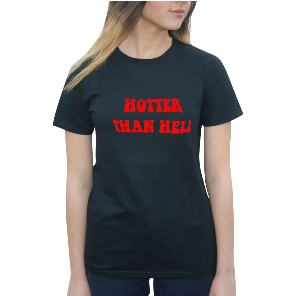 Ideal 2019 New Summer Fashion Hotter Than Hell Tshirts for Women Letter Printed Pink T Shirt harajuku fem