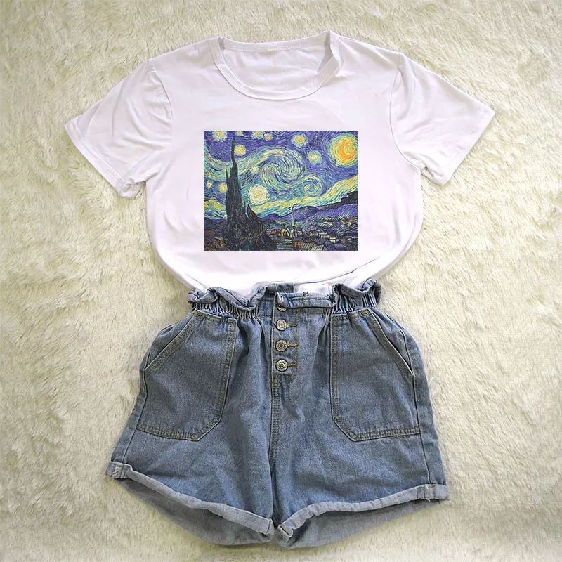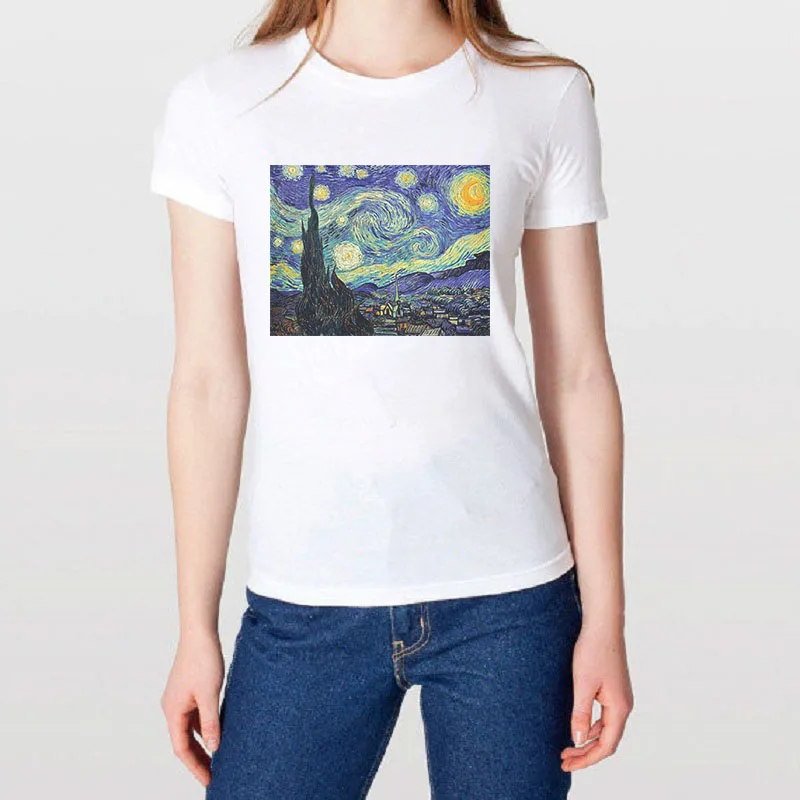 astounding 2018 High Quality T shirt Women Summer Tops Van Gogh Oil Printed Model Clothing Plus Size Casual Un