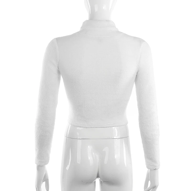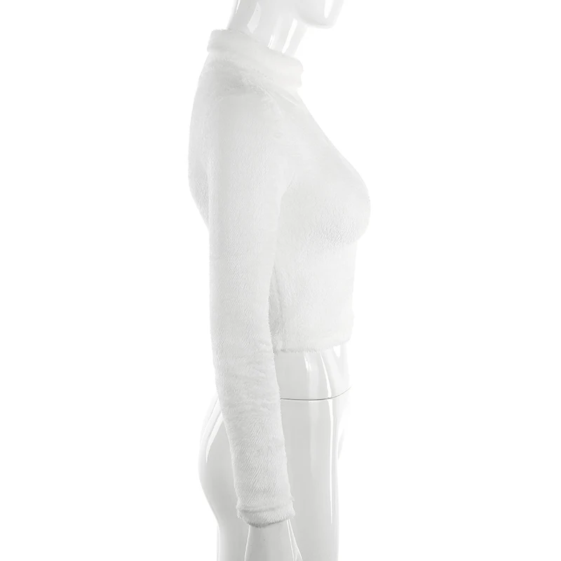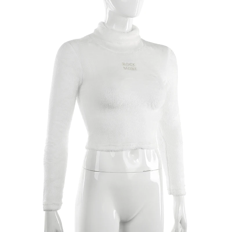 discounted Sweetown 2019 Autumn Winter Turtlneck Teddy Tshirt Women Letter Embroidery Crop Top White Solid Lon