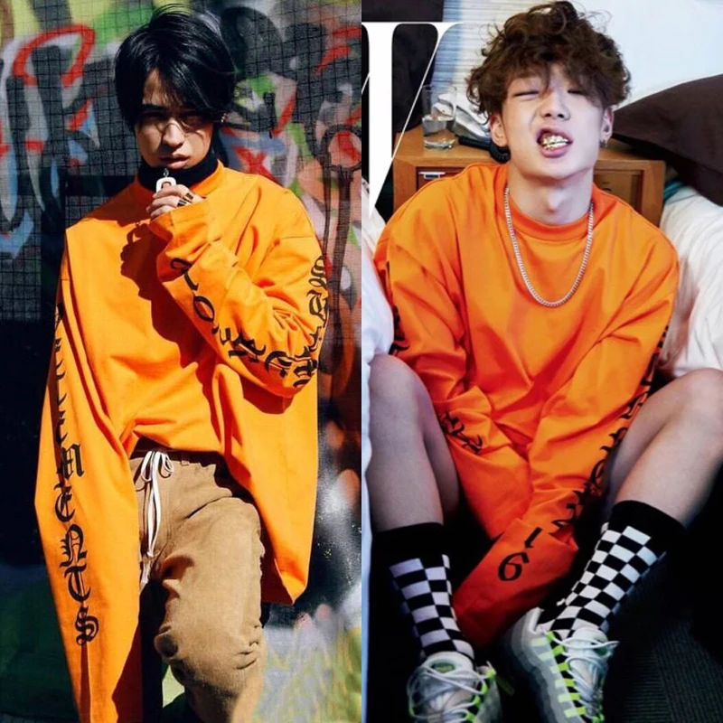 wonderful TAEYANG Bobby Victoria Song Kris Wu Same Loose Long Sleeves T-shirts Pullovers Women Men Couple Tsh